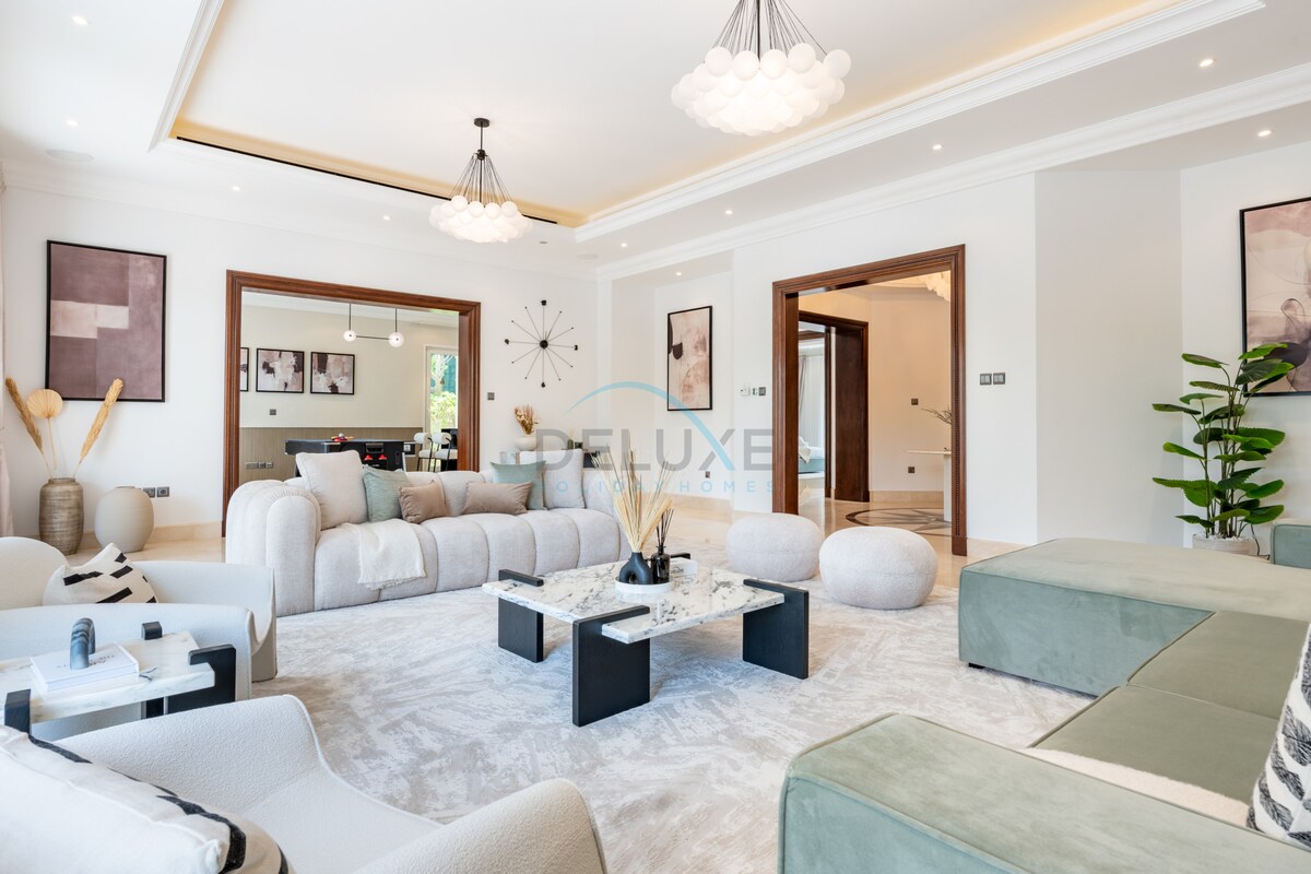 Experience luxury in this exquisite 7-bedroom villa located in the prestigious Emirates Hills. Spanning over 21,070 sq.ft, this residence features 9 lavish bathrooms and two maid’s rooms. Step outside to your private pool surrounded by lush gardens, perfect for relaxation and entertaining. Inside, enjoy modern finishes and smart home capabilities. With nearby amenities and a serene environment, this villa is the ultimate sanctuary. Don’t miss out—contact us today to schedule a viewing!