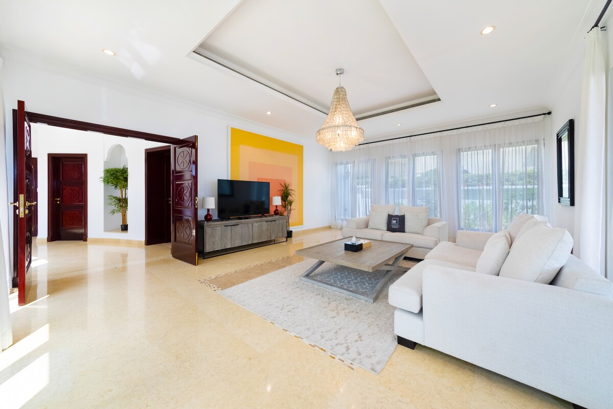 Experience luxury in this stunning 6-bedroom villa located in the prestigious Palm Jumeirah. Spanning 13,397 sq.ft, this spacious home features elegant finishes and expansive living areas. Enjoy six beautifully appointed bathrooms, a maid’s room, and a layout perfect for entertaining. Outside, indulge in the landscaped garden and take in breathtaking views. With smart home features and nearby amenities, this villa is ideal for upscale living. Don’t miss out—contact us today to schedule a viewing!