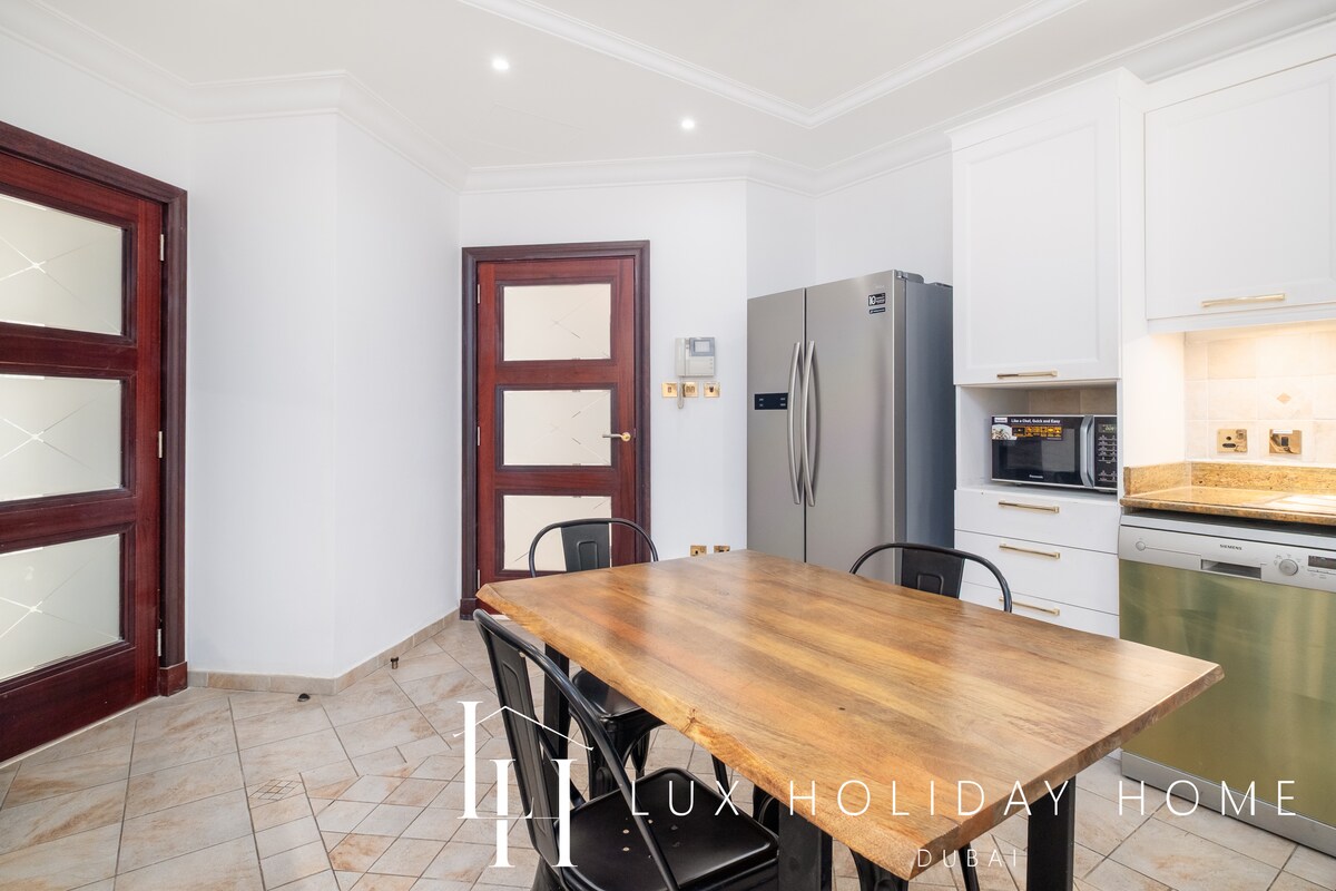 Experience luxury living in this exquisite 4-bedroom villa located in the prestigious Palm Jumeirah. Spanning 5,199 sq.ft, this home features spacious interiors, including a maid’s room, and four elegantly designed bathrooms. Step outside to enjoy a private garden and stunning views. With built-in appliances and smart home features, convenience is at your fingertips. Close to top-notch amenities, this villa offers the perfect blend of comfort and sophistication. Don’t miss out—schedule your viewing today!